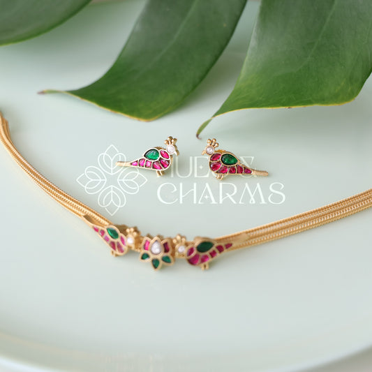 GOLDEN LOTUS & PARROT JADAU CHOKER SET | PREMIUM JEWELLERY