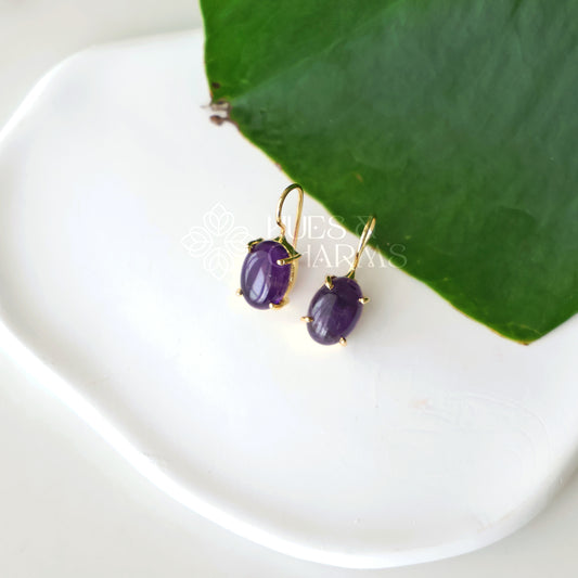MINIMAL OVAL RAW STONE DROP EARRINGS (Colours available)