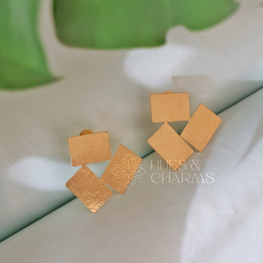 GOLDEN STACKED SQUARE STUD EARRINGS