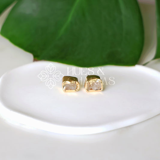 GOLDEN SMALL RAW STONE STUD EARRINGS (COLOURS AVAILABLE)