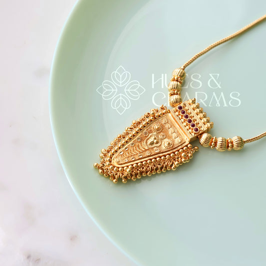 GOLD PLATED POORAM NETTIPATAM PENDANT NECKLACE | GOLD PLATED
