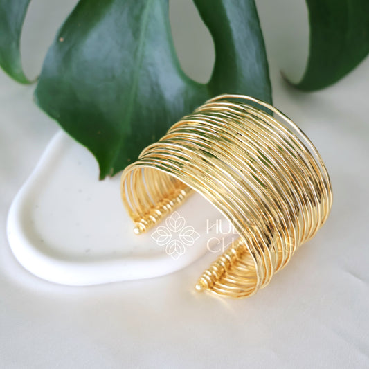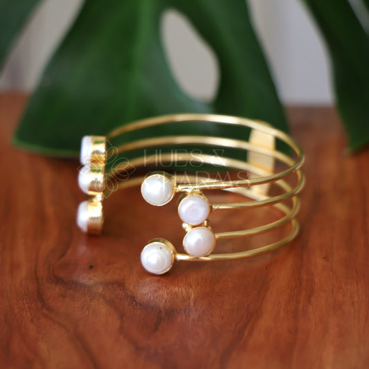 GOLDEN 4 LAYER CELESTE PEARL CUFF BANGLE