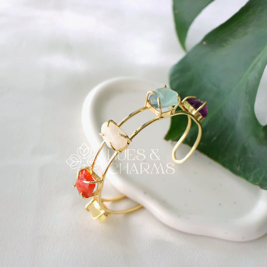 STATEMENT MULTI RAW STONE ADJUSTABLE BANGLE(COLOURS AVAILABLE)