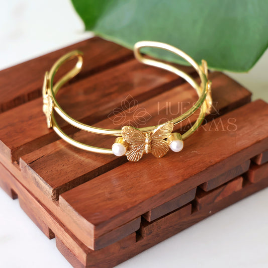 GOLDEN ADJUSTABLE BUTTERFLY BANGLE WITH PEARLS