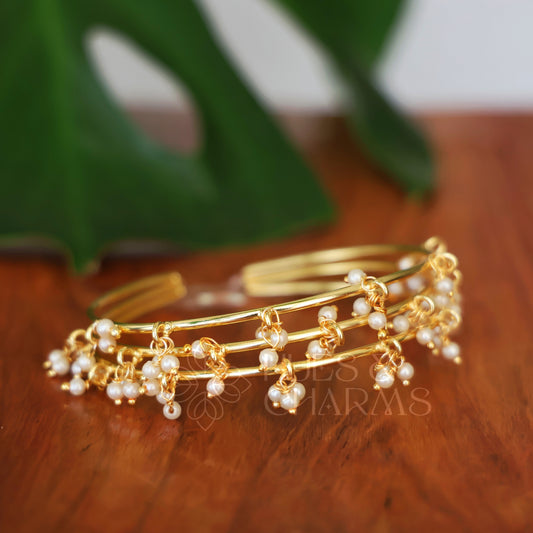 GOLDEN 3 LAYER PEARL DROPS ADJUSTABLE BANGLE