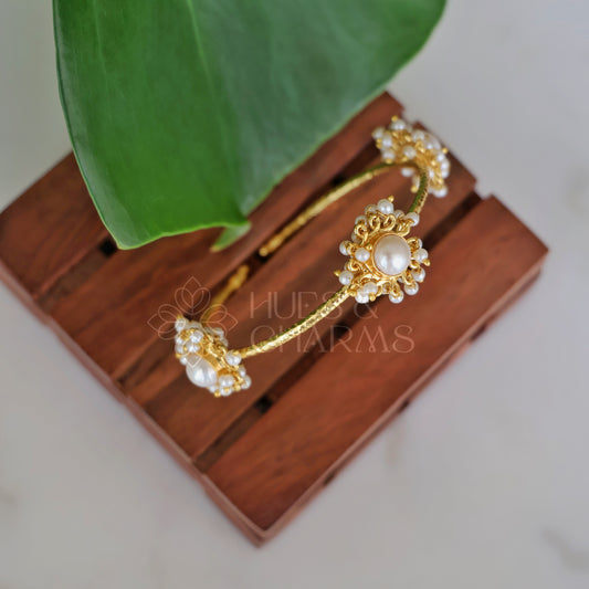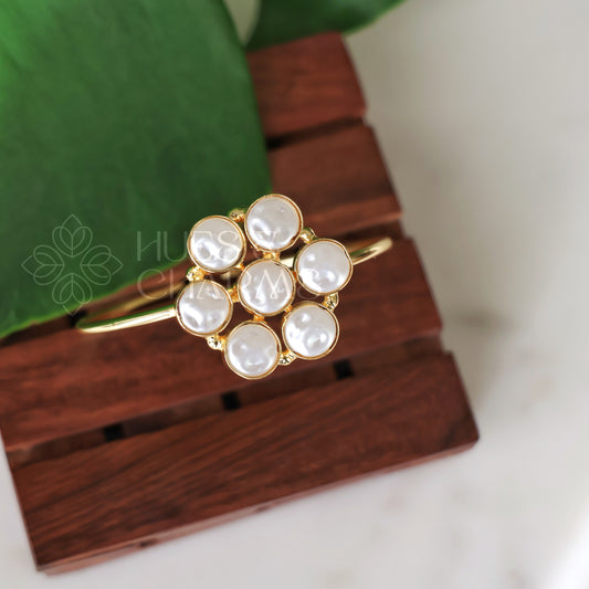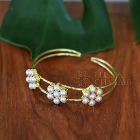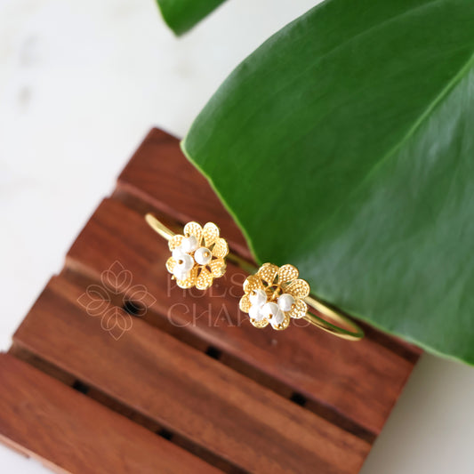 GOLDEN 3 FLORAL PEARL ADJUSTABLE BANGLE