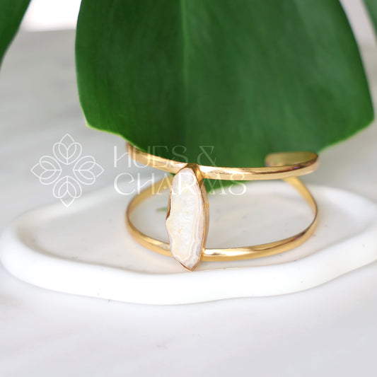 GOLDEN ELARA RAW STONE CUFF ADJUSTABLE BANGLE(COLOURS AVAILABLE)