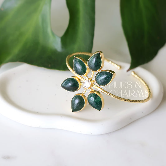 GOLDEN FLORA RAW STONE ADJUSTABLE BANGLE(COLOURS AVAILABLE)