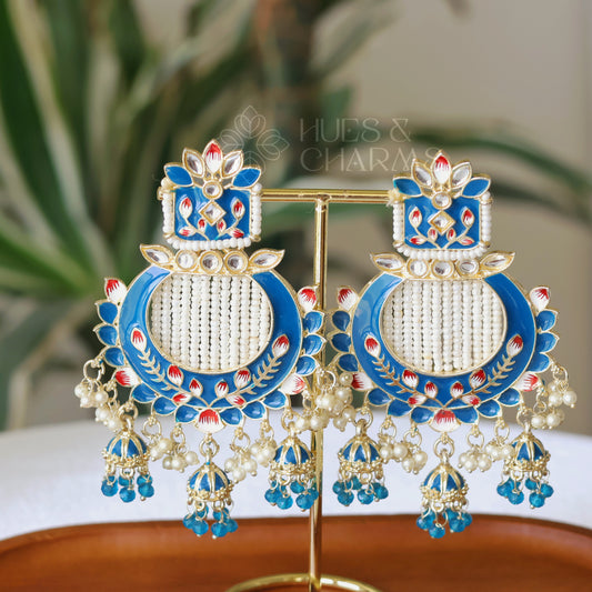 MEENAKARI EARRINGS WITH TRI JHUMKA - SKY BLUE
