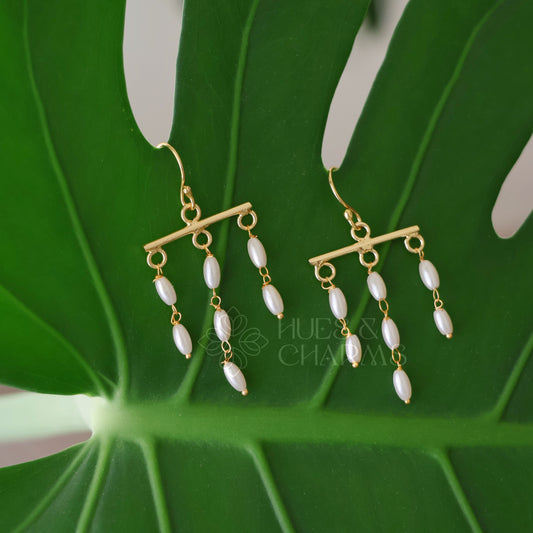 GOLDEN 3 LAYER RICE PEARL DROP EARRINGS