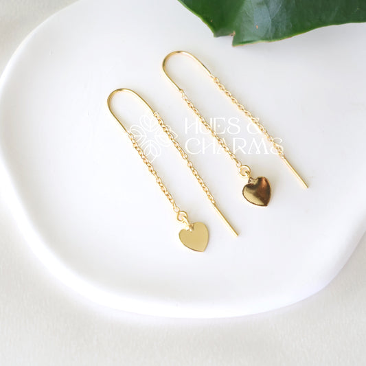GOLDEN NEEDLE AND THREAD HEART EARRINGS
