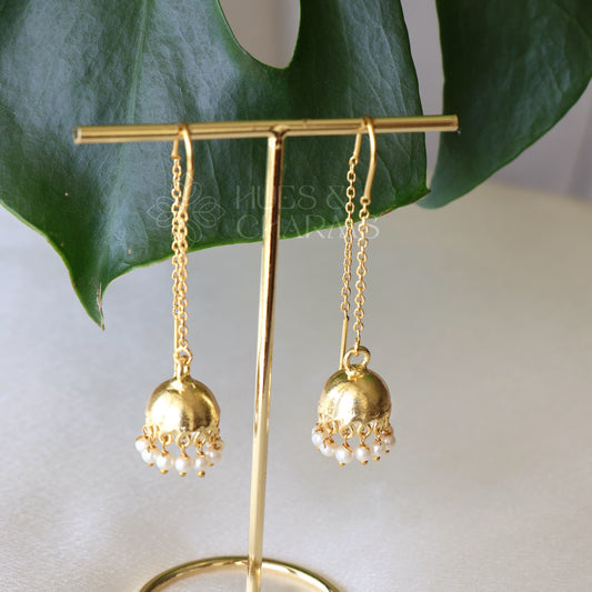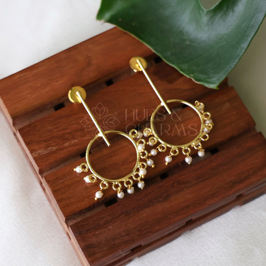 GOLDEN HOOP DROPS EARRINGS WITH PEARLS
