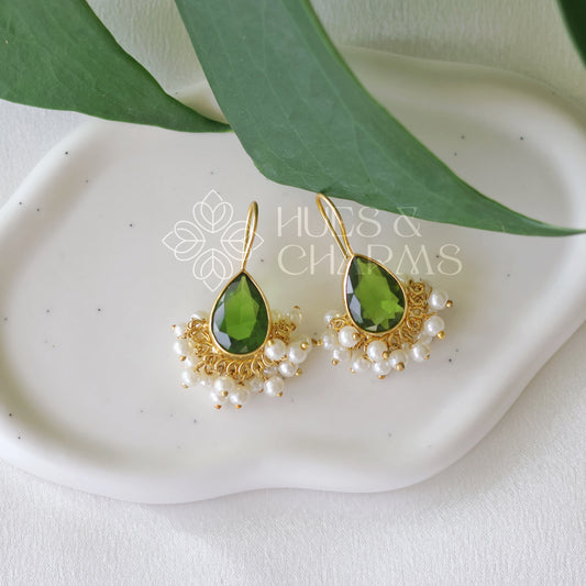 RAW STONE DROP WITH PEARL (COLOURS AVAILABLE )