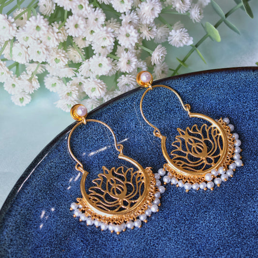 GOLDEN LAYERED LOTUS PEARL EARRINGS (COLOURS AVAILABLE)