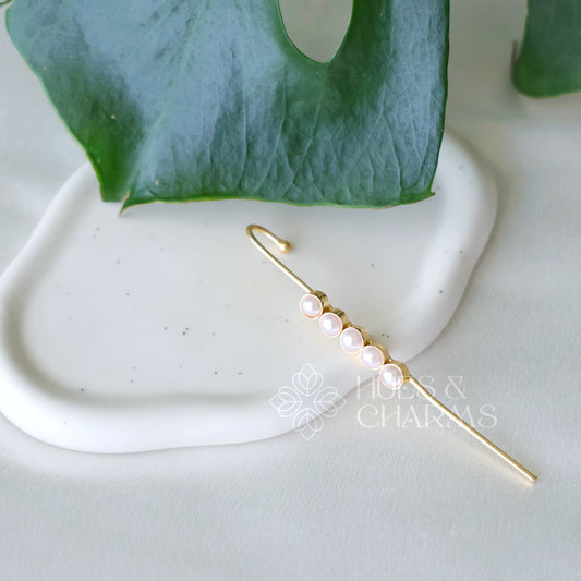 GOLDEN MOONFLOWER EAR CUFF WITH PEARLS (COLOURS AVAILABLE)