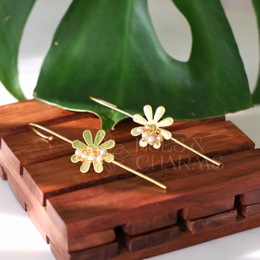 GOLDEN DAISY FLOWER EAR CUFF WITH PEARLS