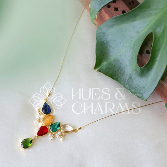 GLOSSY 5 DROP FLOATING NECKPIECE WITH PEARLS (COLOURS AVAILABLE)