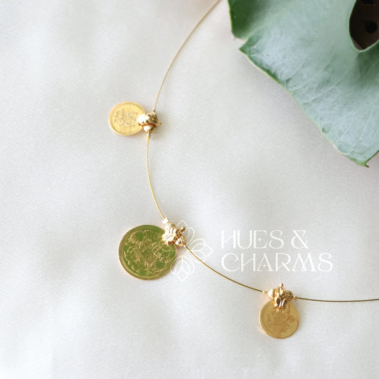 GOLDEN LAKSHMI 3 COIN FLOATING NECKPIECE