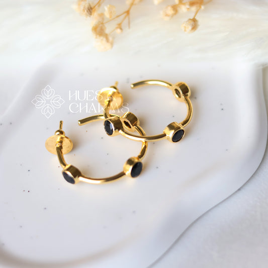 GLOSSY 3 STONE HOOP EARRINGS- BLACK