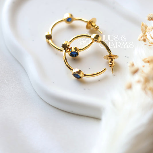 GLOSSY 3 STONE HOOP EARRINGS- BLUE