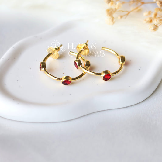 GLOSSY 3 STONE HOOP EARRINGS- RED