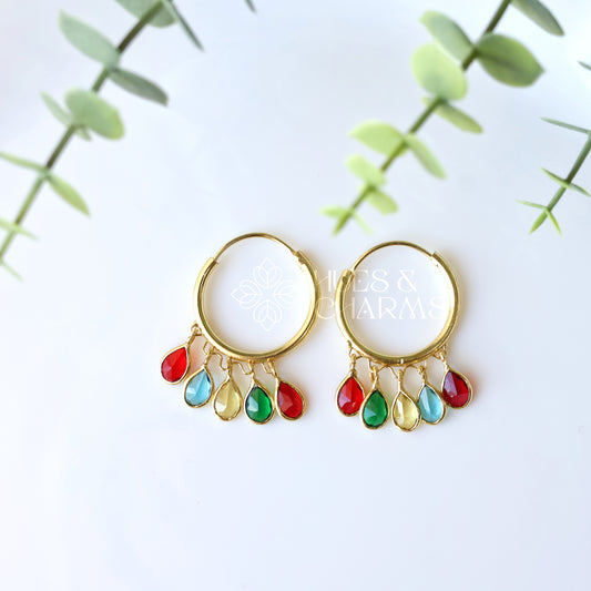 GOLDEN HOOP WITH GLOSSY DROPS- MULTICOLOR
