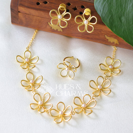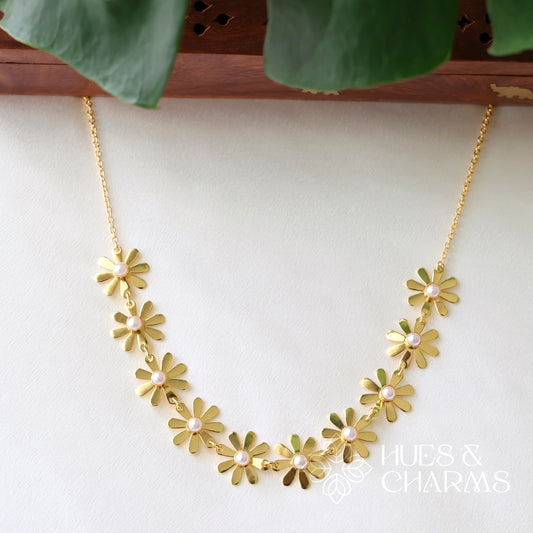 GOLDEN PEARL DAISY BLOOM NECKPIECE
