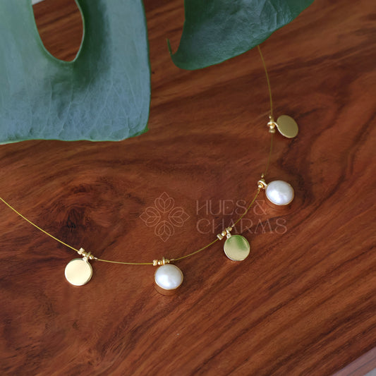 WHITE PEARL AND COIN FLOATING NECKPIECE