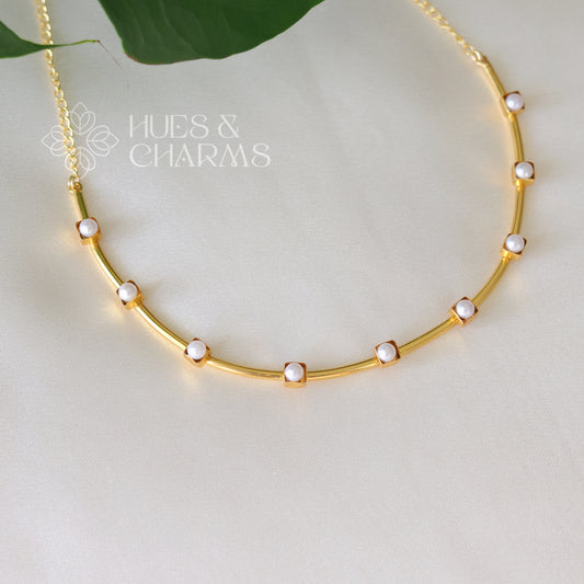GOLDEN 3 PEARL MINIMAL NECKPIECE