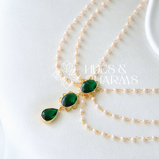 GOLDEN 3 LAYER PEARL AND GLOSSY STONE NECKLACE (COLOURS AVAILABLE)