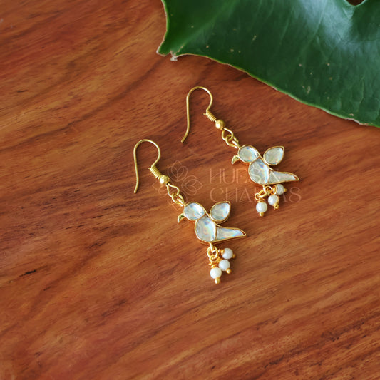 GOLDEN FLORA RAW STONE DROP EARRINGS WITH PEARL (COLOURS AVAILABLE)