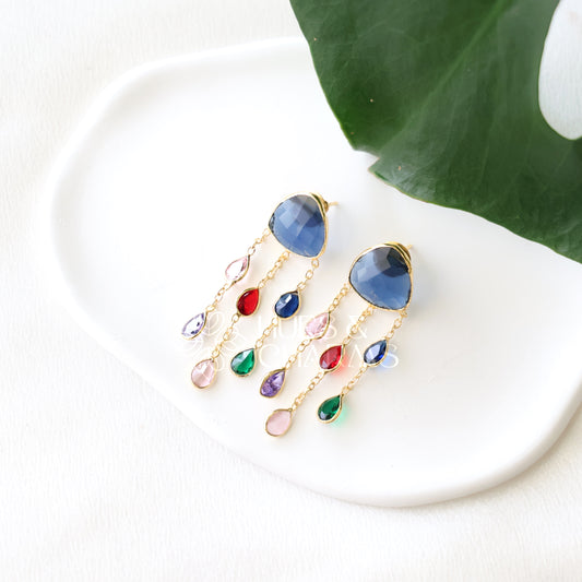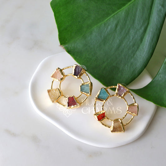 GOLDEN STATEMENT CELESTE RAW STONE STUD EARRINGS (COLOURS AVAILABLE)