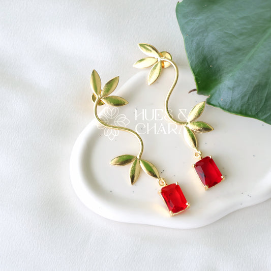 GOLDEN GLOSSY LEAFY GRACE EARRING (COLOURS AVAILABLE)