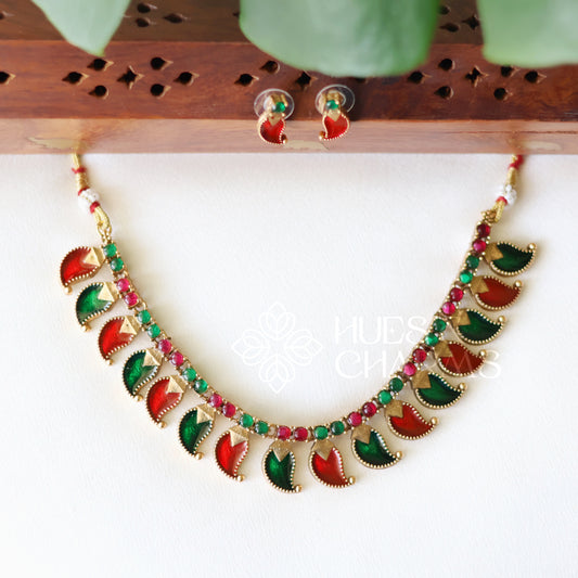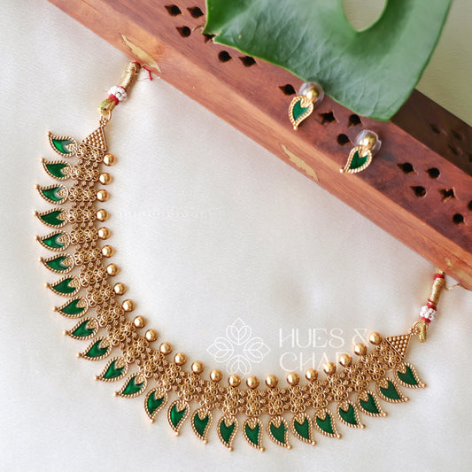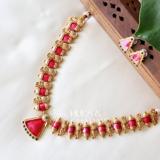 GOLDEN ENAMEL MAYURA PALAKKA NECKLACE SET (COLOURS AVAILABLE)