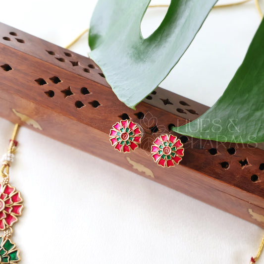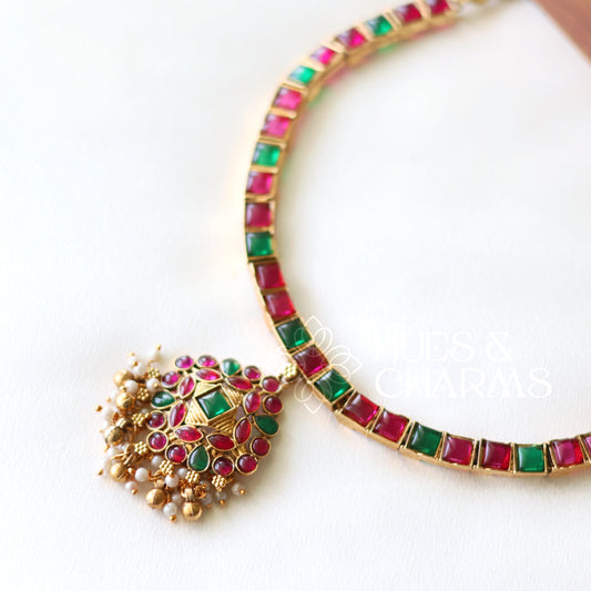 TRADITIONAL RUBY AND GREEN ATTIGAI NECKLACE SET