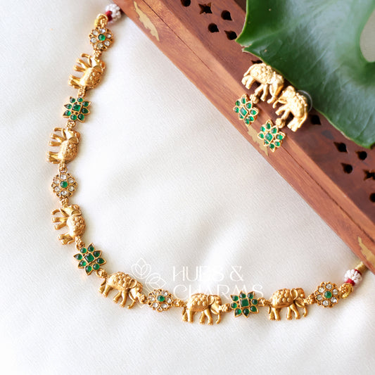 GOLDEN GAJAPUSHPA NECKLACE SET (COLOURS AVAILABLE)