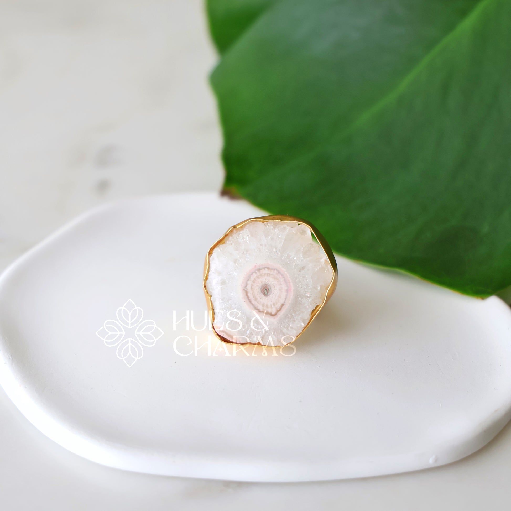 This Golden Glossy whire agate adjustable ring is the ultimate statement piece. With its adjustable size, it can fit any finger comfortably. The beautiful golden huse adds a touch of luxury, while the glossy finish adds a subtle shine.