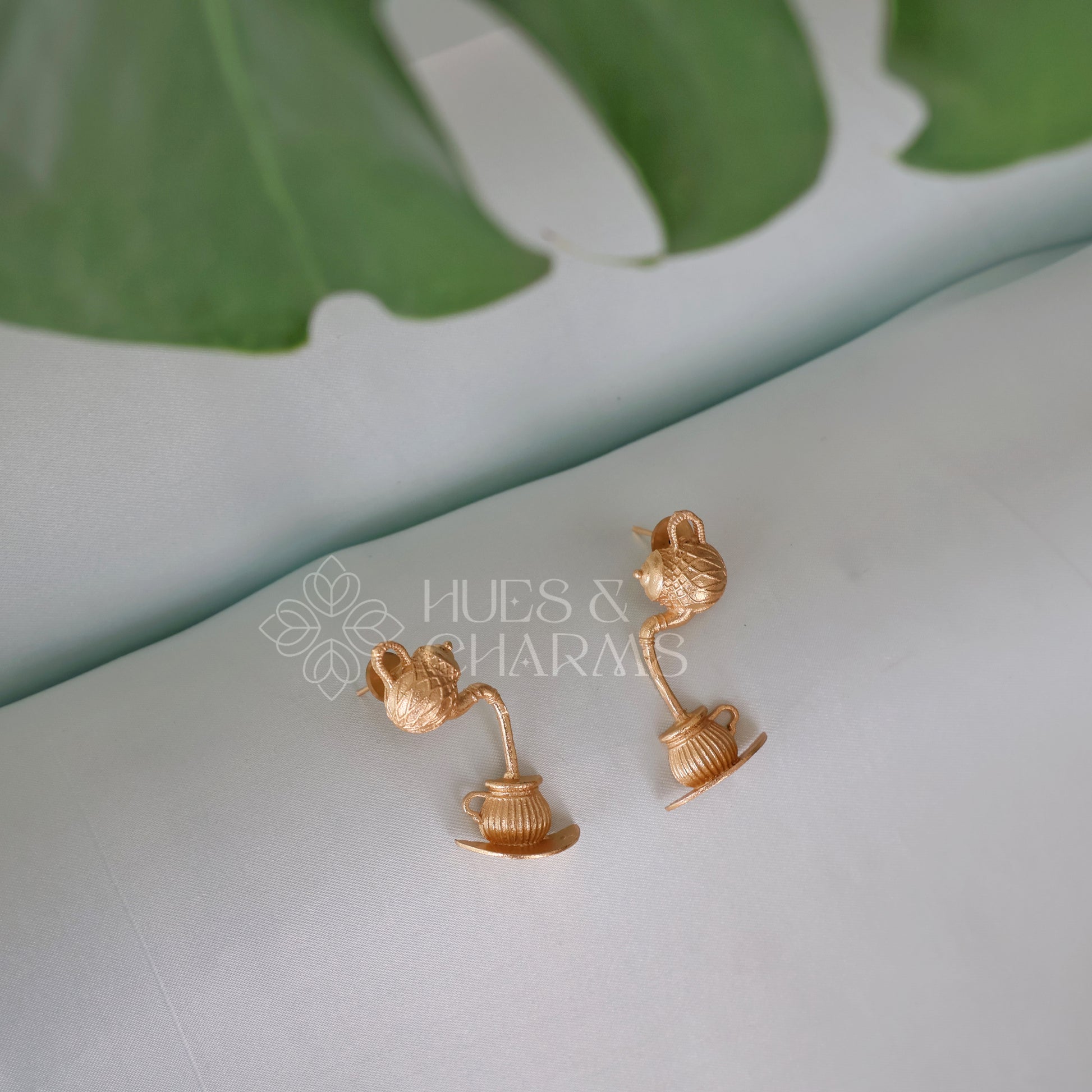 Introducing the Golden classis vintage teapot Drops unique lightweight golden earrings perfect for a unique style piece for any fashion-forward individual. Crafted in a unique tea pot and cup and saucer shape, these earrings are sure to make a bold and stylish statement.
