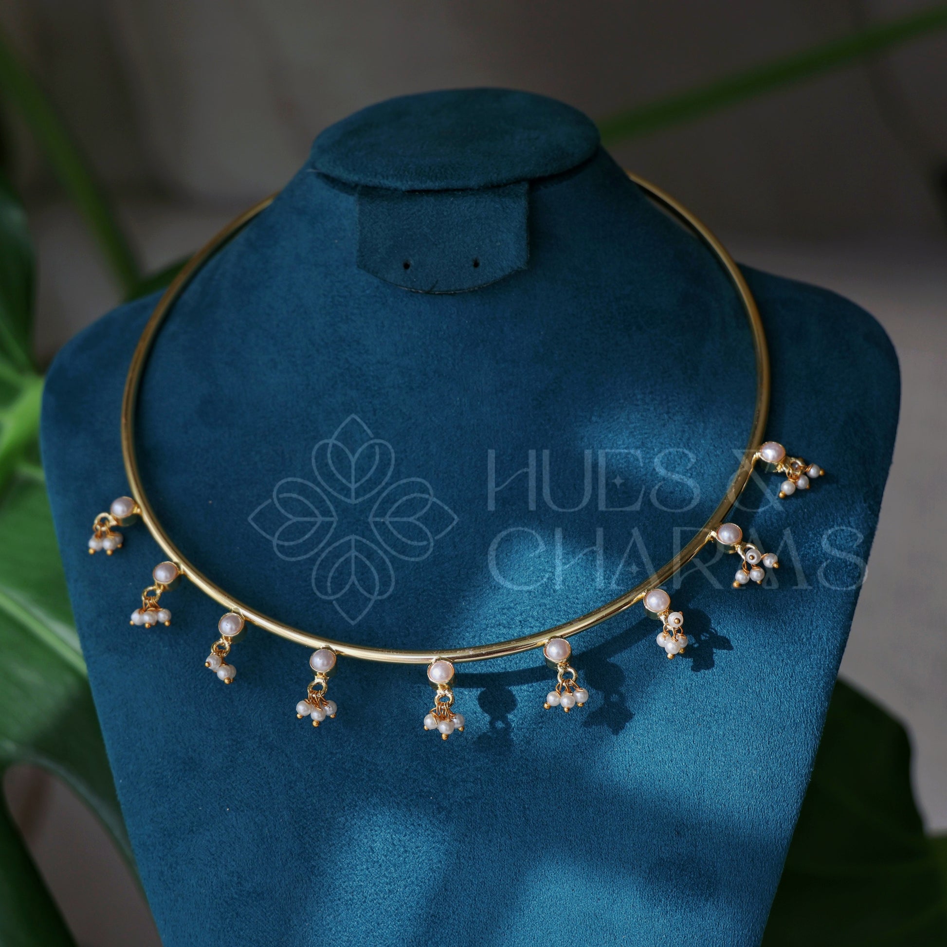 Expertly crafted with intricate detailing, this Golden minimal 9 Pearl neckcuff is a premium quality accessory that will add a touch of elegance to any outfit. The beautiful neckcuff adorned with a cluster hanging pearls, will make you stand out in style.