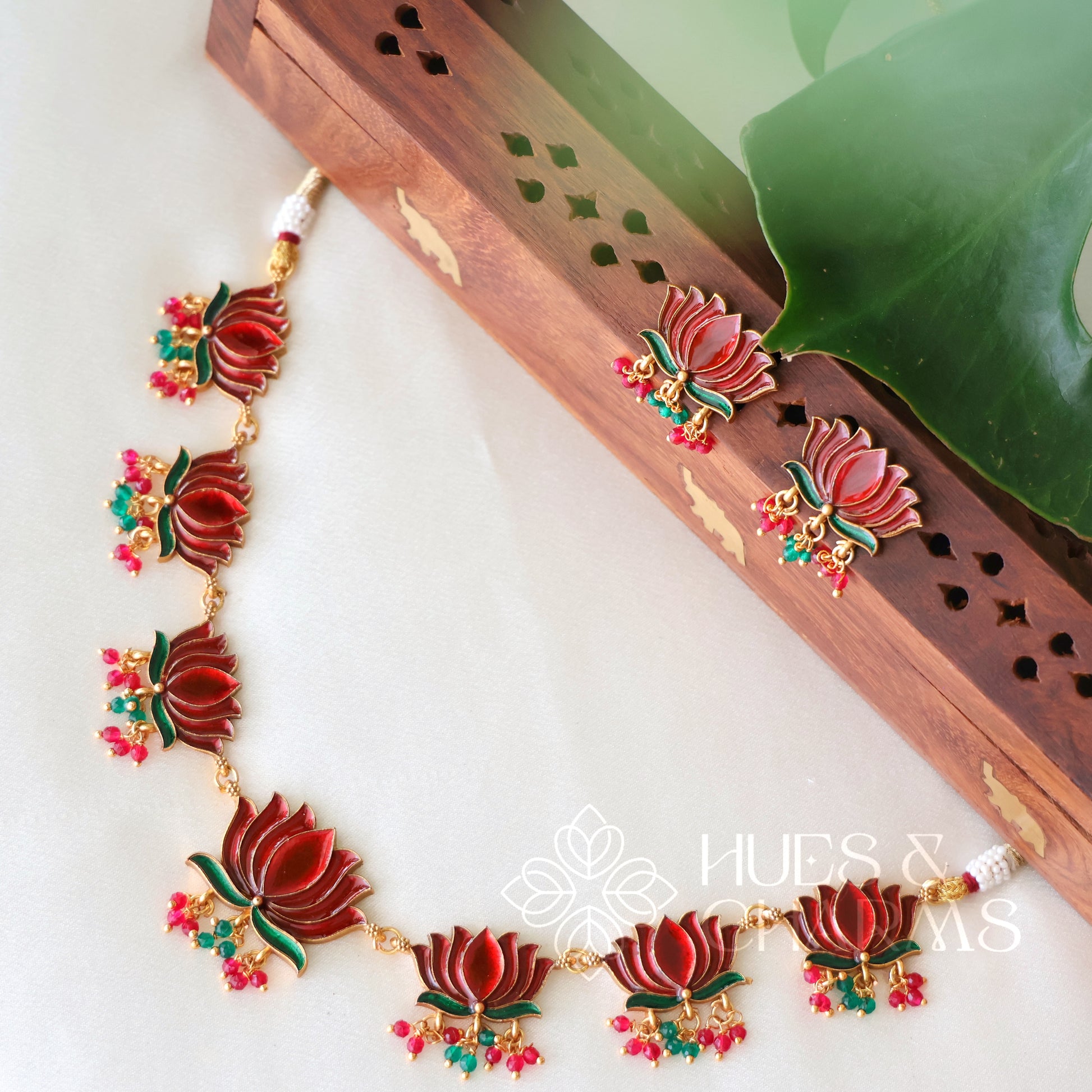 LOTUS ENAMEL GUTTAPUSALU NECKLACE SET(OPTIONS AVAILABLE)