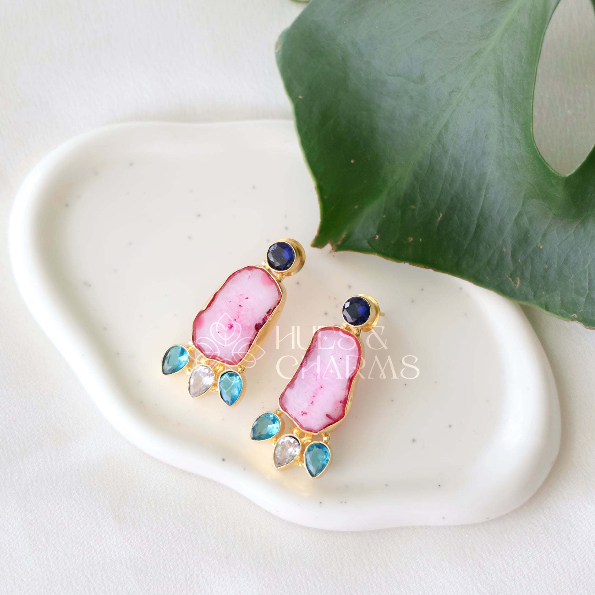 GOLDEN EIRA AGATE DROP EARRINGS (COLOURS AVAILABLE)