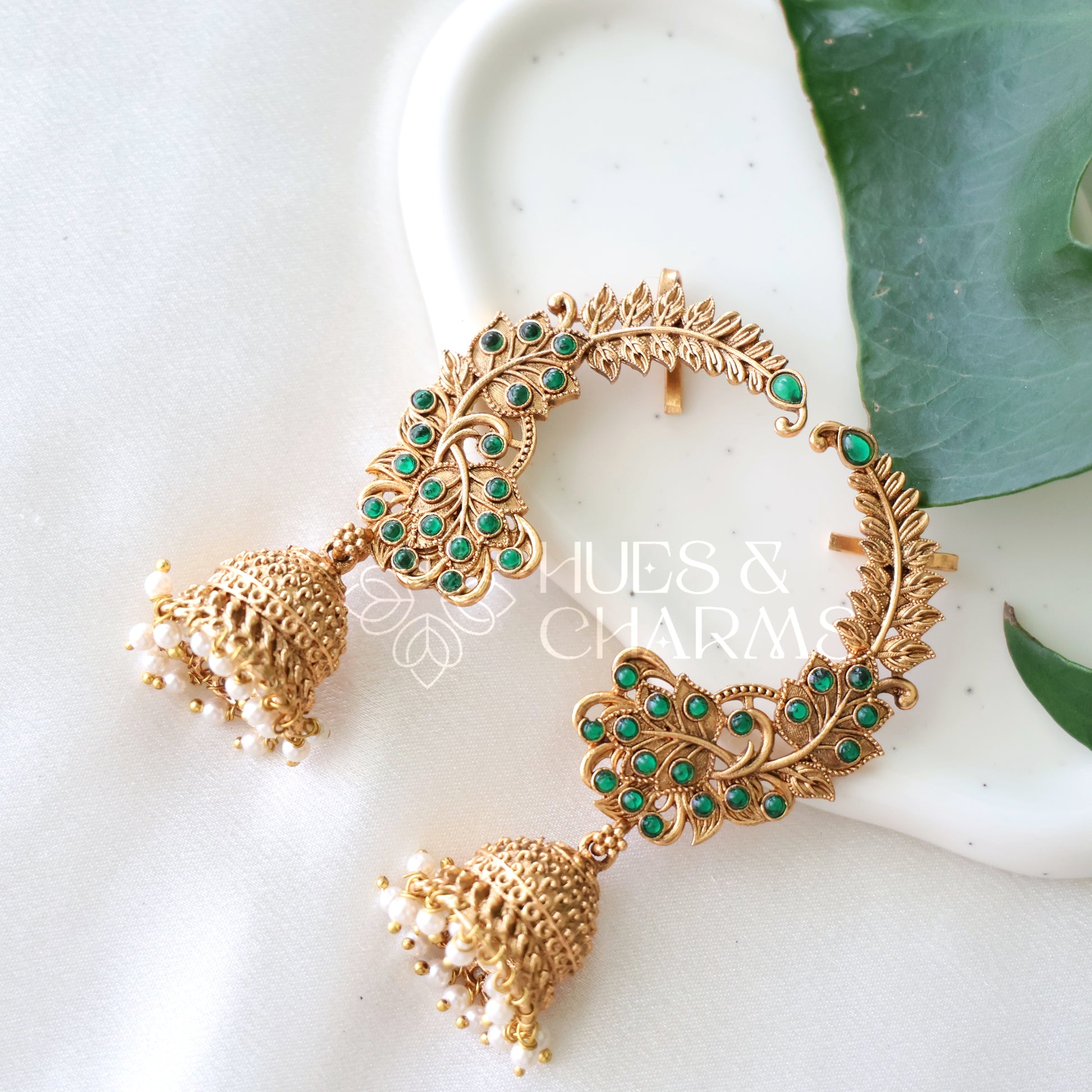 GOLDEN KANKA LEAF EAR CUFF JHUMKAS WITH PEARLS (COLOURS AVAILABLE)