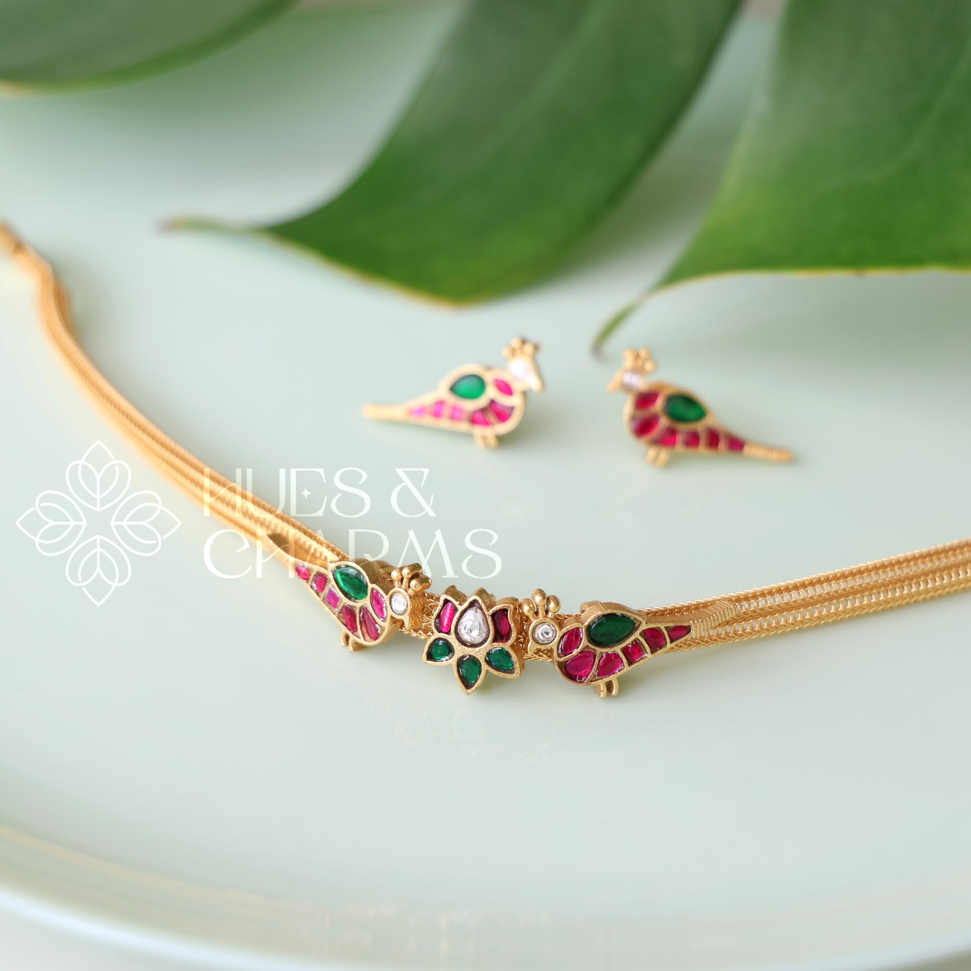 GOLDEN LOTUS & PARROT JADAU CHOKER SET | PREMIUM JEWELLERY
