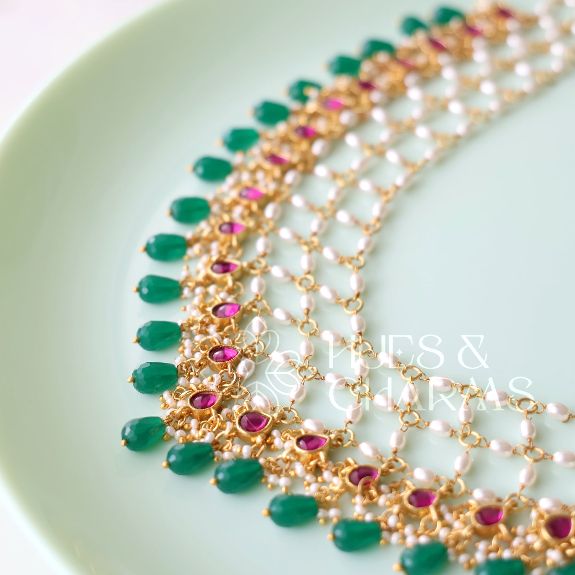 - Synthetic pearls & jadau stones